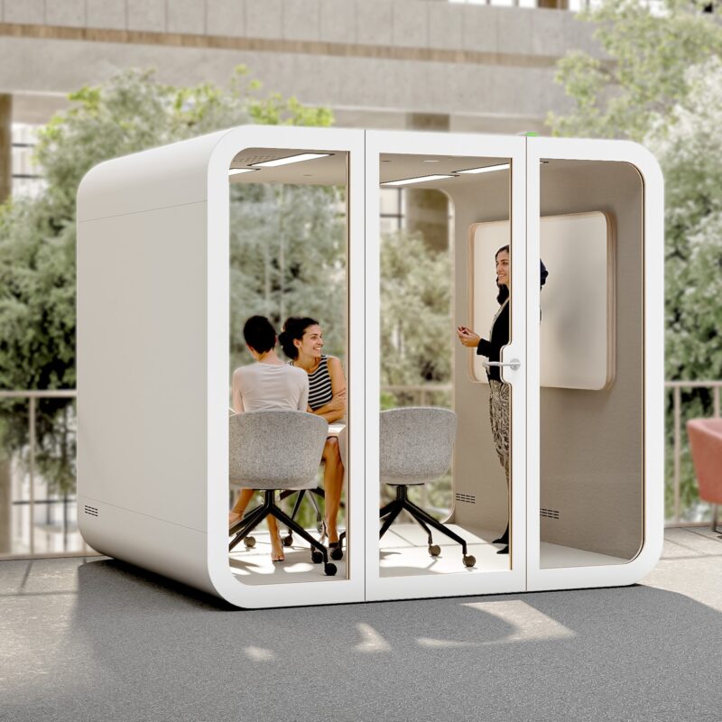 - Acoustic pods provide enclosed areas for private calls, deep work sessions, or even small group huddles.